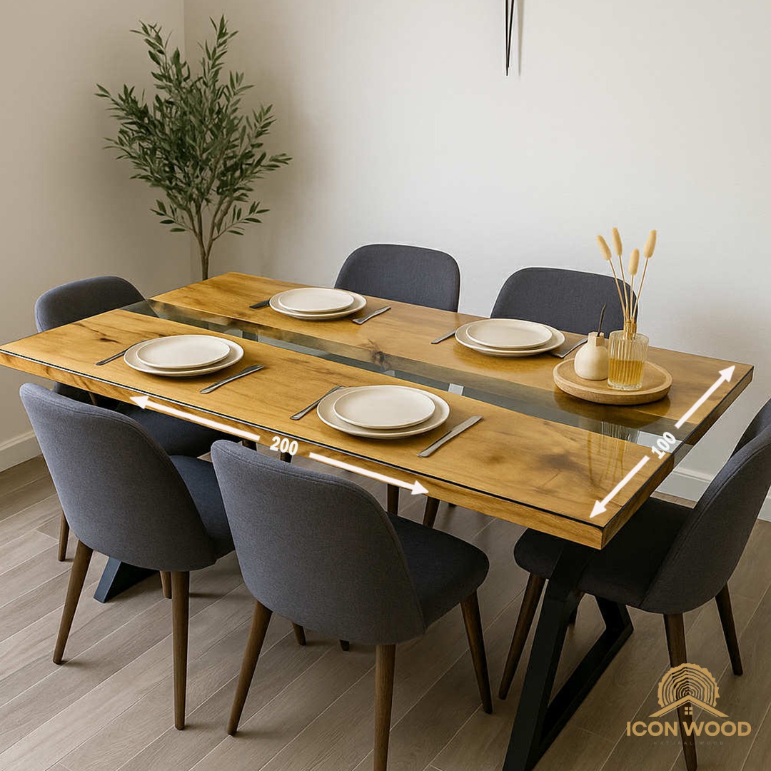 طاولة سفرة بتصميم انيق وعصري مع زجاج.