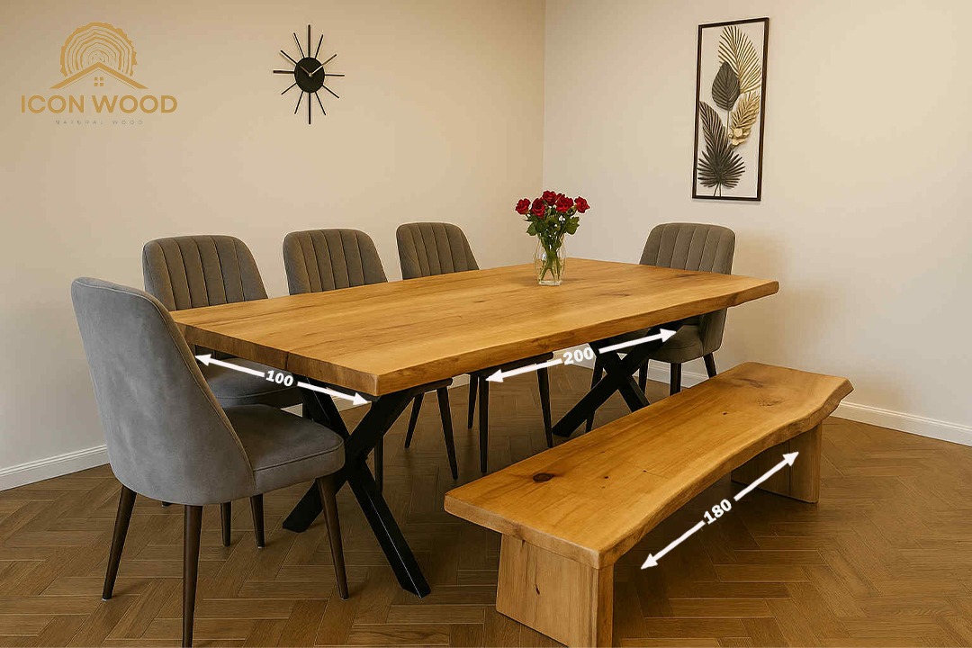 طاولة سفرة بِتصميم مميز مع مقعد خشبي .