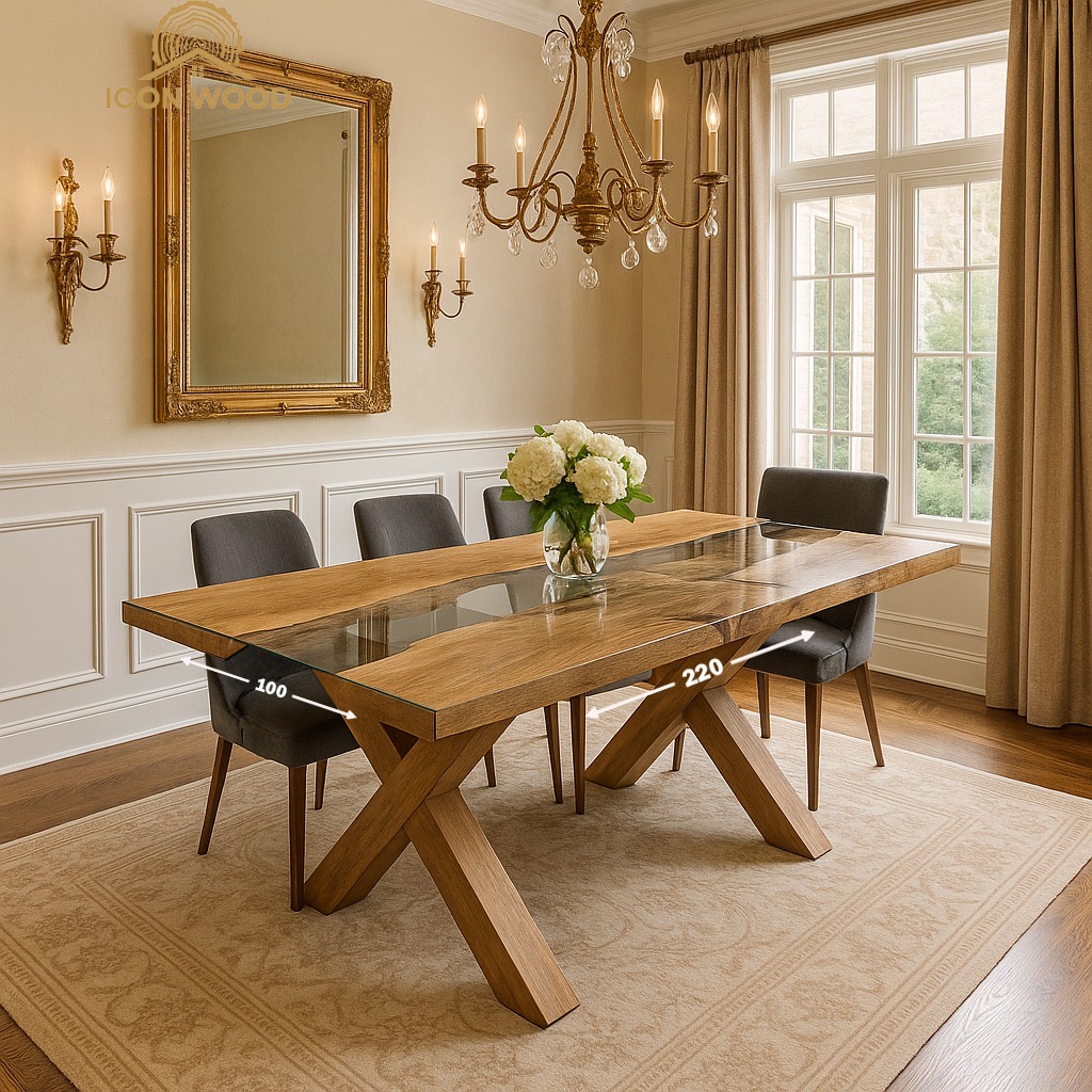طاولة سفرة خشب طبيعي بتفاصيل مميزة.