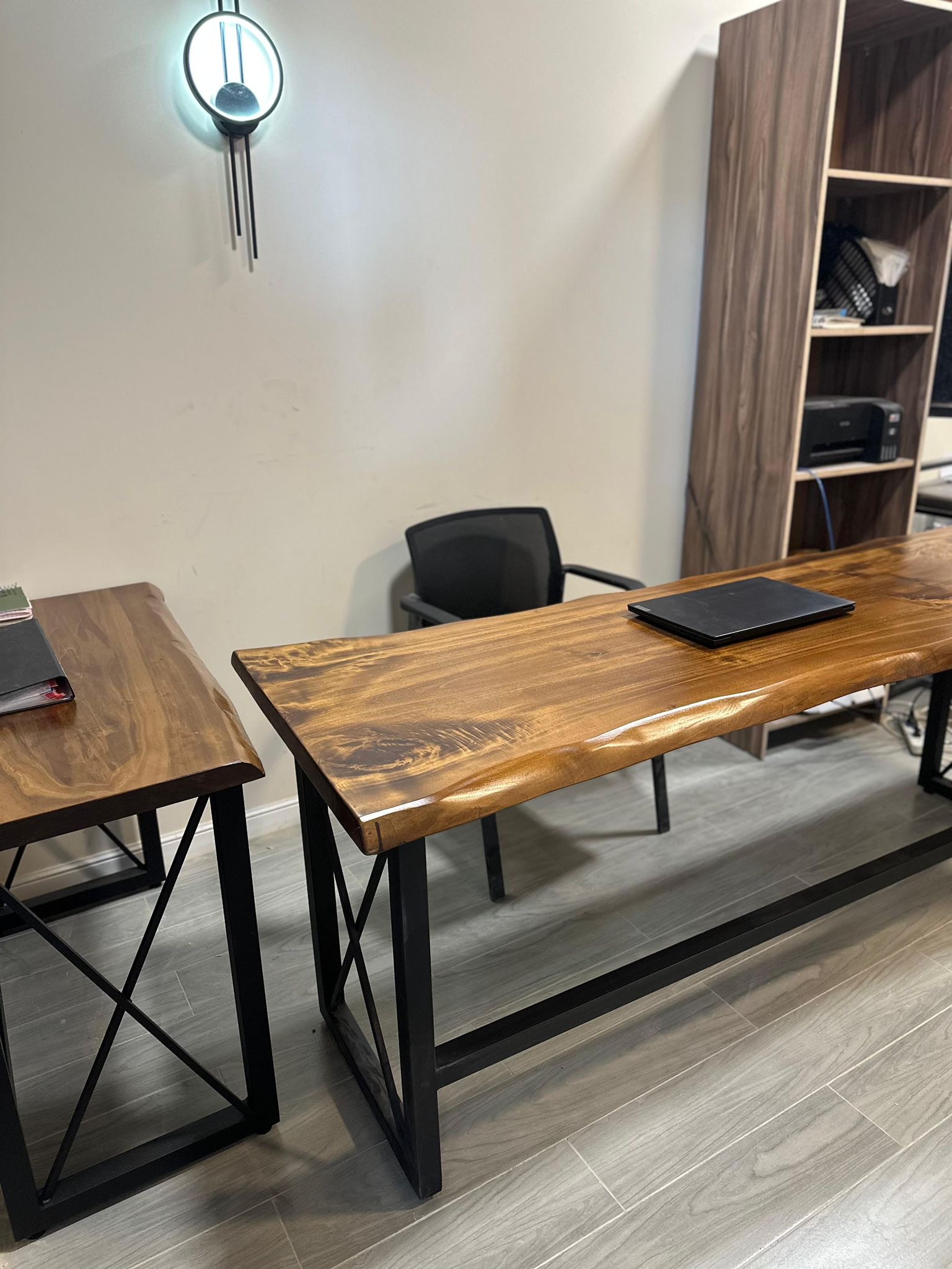 مكتب خشب طبيعي بتصميم عصري.